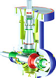 a bevel gear, which transmits the power to the shaft. The